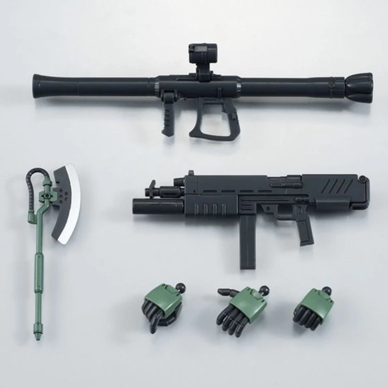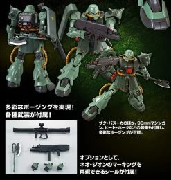 In addition to Zaku Bazooka, equipment such as 90 mm machine gun, heat and hawk is also included, enabling versatile posing.