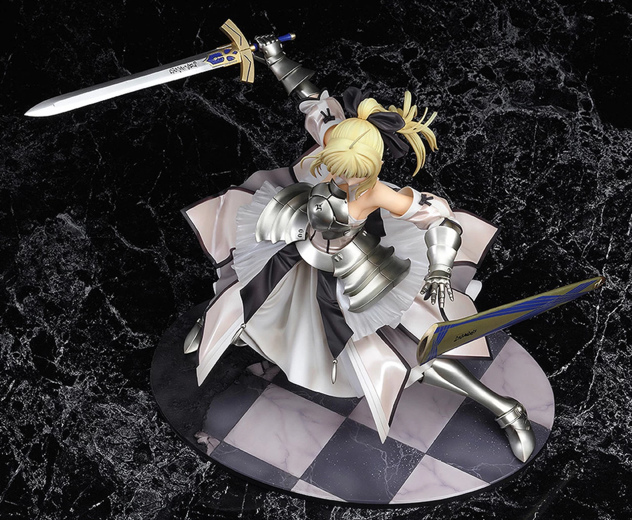 The long-awaited rerelease of the 1/7th scale figure of Saber’s alternate form, Saber Lily! Posed as if preforming her ultimate move “”Distant Avalon”” slashing through the air with her sword, Caliburn. Her other noble phantasm, the sword Excalibur has also been included and can be switched out for a difference appearance whenever you wish!